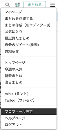 トップページ右上の「設定」から「プロフィール設定」をクリックします。