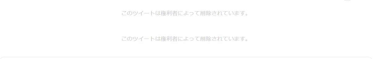 削除が完了すると、削除したポスト(ツイート)部分に「このツイートは権利者によって削除されています。」と表示されます。