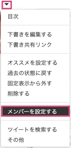 まとめのメニューボタンから「メンバーを設定する」を選択してください。