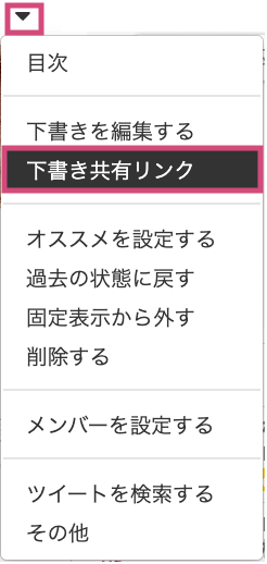まとめのメニューボタンから「下書き共有リンク」を選択してください。