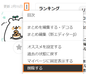 作成したまとめを削除したい場合は、まとめページ右上にある「▼」のメニューボタンの「削除する」を選択してください。