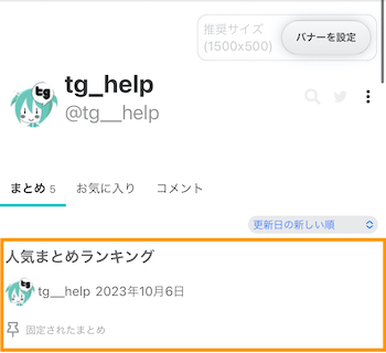 ユーザーページのまとめ一覧最上部に固定されます。固定できるまとめは1つだけです。