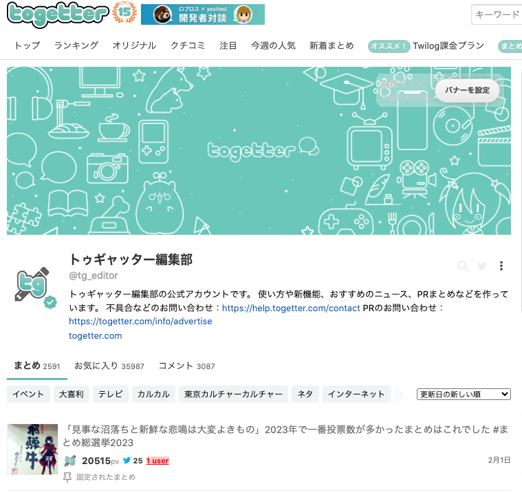 各コンテンツを並び替えたり、フィルタリングすることができます。詳細は「まとめ・お気に入り・コメントを並び替える」「タグでまとめ等をフィルタリングする」をご確認ください。
