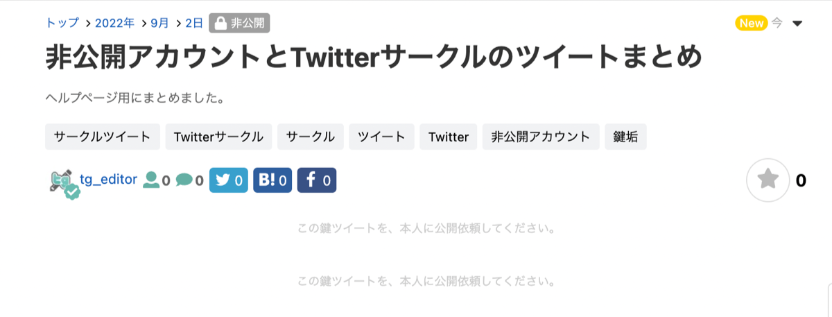非公開アカウントのポスト(ツイート)公開は、その投稿者自身が公開作業をする必要があります。公開依頼は、まとめ作成者がツイート投稿者にリプライ等で行う必要があります。