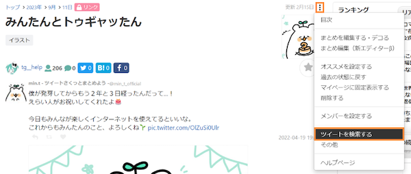- まとめページの右上にある「︙」から「ツイートを検索する」を選択