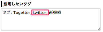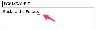 ワードが複数ある場合は間にカンマ(,)を入力することで、複数のタグを設定することができます。読点(、)でも可能ですが自動でカンマ(,)に変換されます。