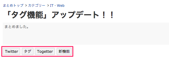 設定したタグは、まとめタイトルの下に表示されます。候補の中から選択するか、直接入力で10個まで設定可能です。