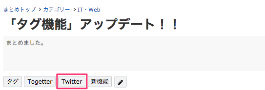 公式がその話題について盛り上げたい「特集タグ」です。特集タグはまとめ下部にも表示されます。※Togetterのみの機能です。