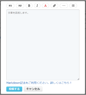 入力フォーム上にあるボタンを使ってテキストを装飾できます。また、「Markdown」と呼ばれる記法も使用できます。
