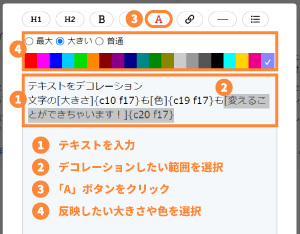 Markdown記法を使うことで、ボタンにないテキストの装飾も行うことができます。
