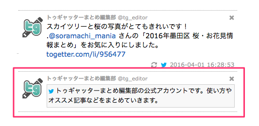 まとめ作成画面にて、プロフィールを挿入したいユーザーのポスト(ツイート)を読み込みます。ツイートの取得方法は『ツイートを取得する』を参照してください。